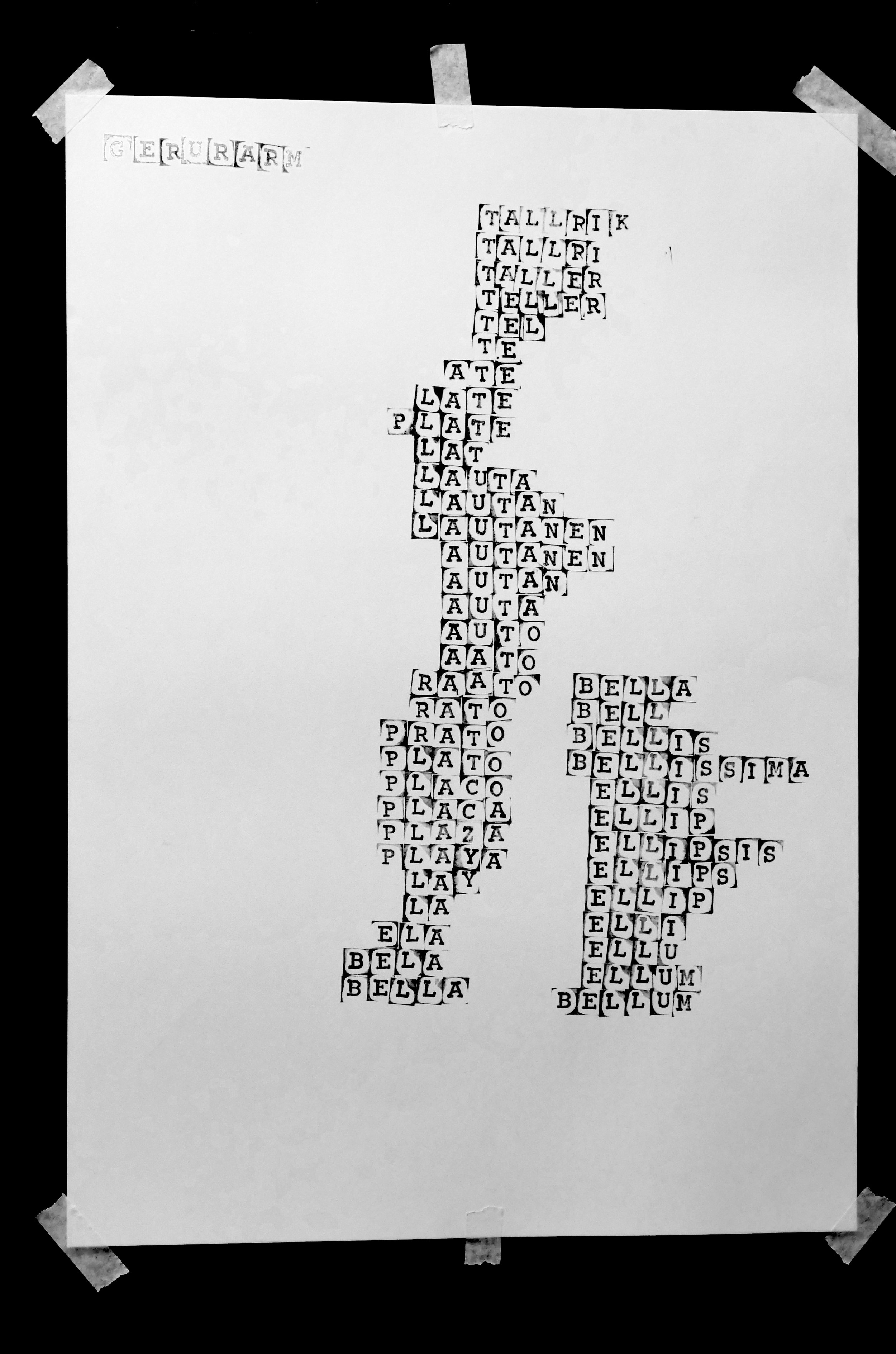 Concrete poem ‘Gerurarm’ at the House of Text collection, Helsinki